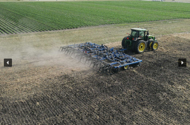 The Tilloll, available in working widths for 10'6" to 40', features 20" concave disc blades on 7 1/2" spacing and a 10-degree gang angle to slice crop residue and penetrate the soil efficiently. Behind the front disc gang is the soil deflector and spray shield, which helps knock down soil from the disc gang, reducing the possibility of ridging and leaving a level surface for chemical application. The shields are fully adjustable and when properly adjusted, help return tilled soul towards the center of the machine.