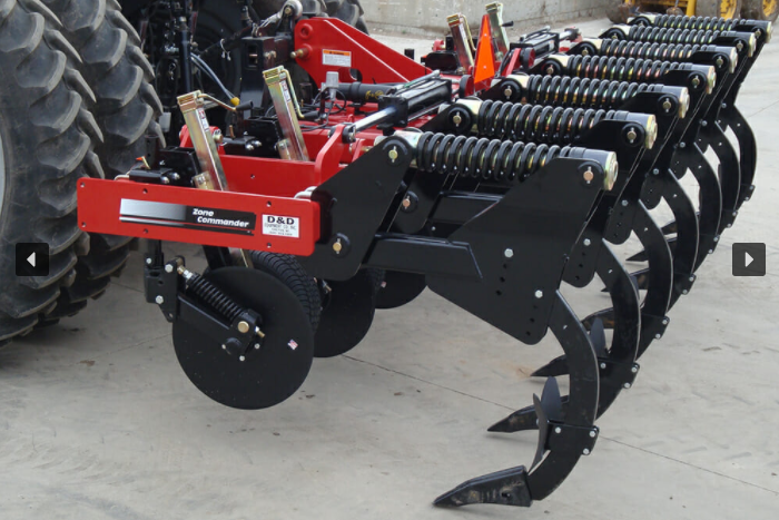 The Zone Commander can be equipped with auto-reset spring shank assemblies, HD hydraulic auto-rest shanks, or rigid-shear bolt shanks. Shank leg options include the 1 1/4" straight leg, the 1 1/4" parabolic leg, or the 3/4" low disturbance shank. Spring cushion lead coulters with different blade options cut the residue and slice the upper layers in the soil profile ahead of the shanks. Turnbuckle-style adjustable gauge wheels allow for quick, positive depth changes for different conditions. The Zone Commander is available in 3 to 7 shank non-folding models and in 7 to 16 shank folding models. The larger folding models include a heavy-duty pull hitch caddy.