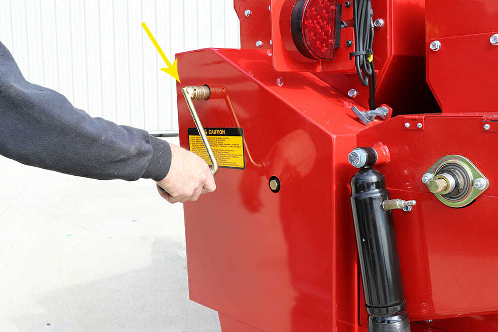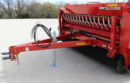 Built-in parking stands allow three-point hitch models to be safely detached from the tractor without the fear of tipping. A built-in walk-board with steps and handrails on the rear of the unit allows for easy filling of the seed boxes. Built-in tie-down lugs are available for securing the Till-N-Seed to trailers for transportation. A seed calibration tray makes custom seed rate calibration easy and is conveniently stored on the machine when not in use. Seed box disconnect pins disengage seeding mechanisms when the unit is used in tillage-only mode.